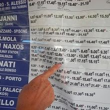 タオルミーナの街とトレニタリアのタオルミーナ・ジャルディーノ駅間を往復する際に利用しました。バスターミナルといっても広場に何台かバスが停まっているだけ。時刻表はチケットブースに貼り出してありましたが、乗り場の案内もないので、バスが来るたびにフロントガラスの行先表示を見て、みんな右往左往していました。