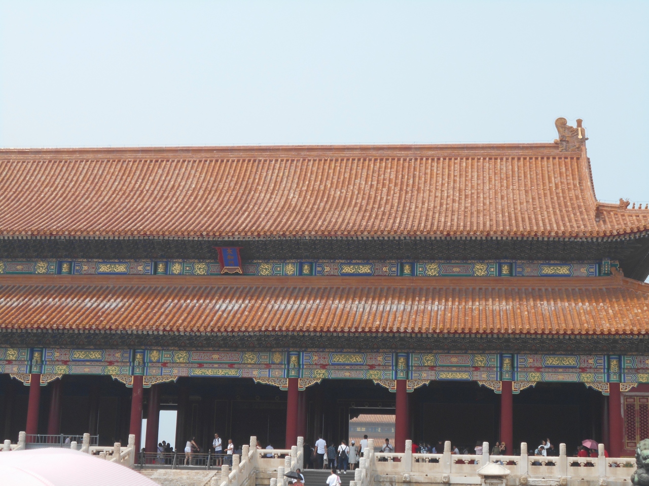 1420年に創建ですが、現在の建物は1889年に再建されたものです。太和殿前の巨大な門で圧倒されます。屋根や壁面の鮮やかな色彩で飾られています。外朝への入口にあたる門で中央の階段には彫刻が施された石が置かれ、一対の銅獅が置かれています。
