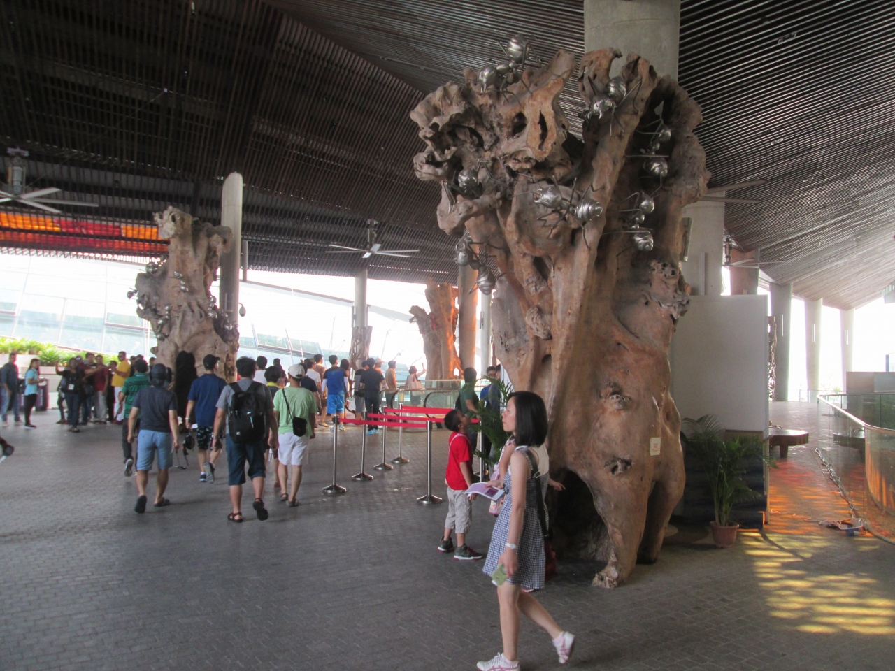 ドームに入るとすぐに人工の滝があり驚きました。まるで別世界です。エレベーターで最上階までのぼり、空中回廊を降りて行くのですが、高いところが苦手の私には少し怖かったです。地下鉄駅から往復のシャトルがあり、クラウドフォレストの入口まで乗って来れます。