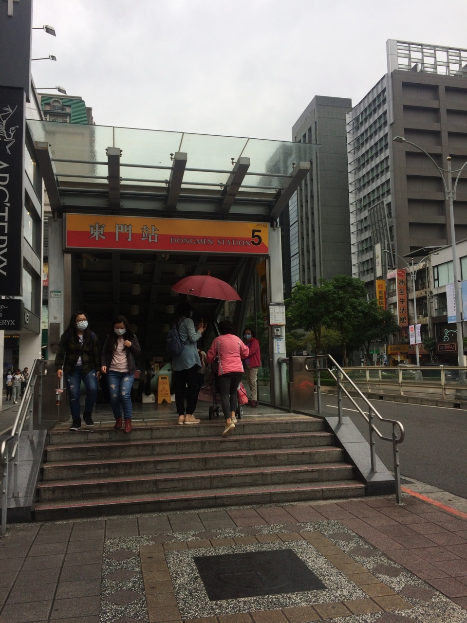 台北MRTの駅の1つで、黄色い線の駅でした。出口は幾つかあり、ディエンタイフォンに一番近い出口は5番出口だったと思います。週末に利用しましたが、駅の出口からは、人がどんどん出て来てかなり人気のある駅でした。