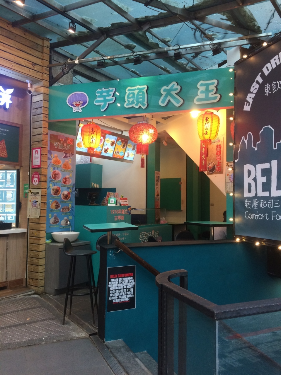 思慕昔が目立ちすぎて、隠れて見えます。思慕昔というマンゴーのかき氷が有名なお店の2軒右側(向かって)にあるお店です。台湾はタロイモをデザートに使用しているので、面白いです。マンゴーの次におすすめです。レジ袋は有料です。