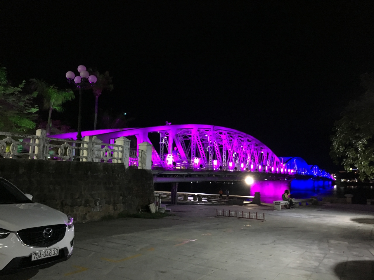 旧市街と新市街を結ぶフエの交通の要所である橋で、行き交う車やバイクはかなり多いです。夜に食事を終えてライトアップされている橋を眺めましたが、青や赤などの派手な色彩でしたが、それが美しいと感じるかは人それぞれです。個人的にはダナンのロン橋より地味ですが、風情があるこちらに軍配を上げますが。ナイトマーケットは平日の2日間歩いたもののやっていませんでした。