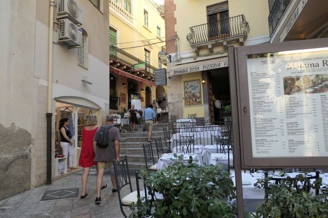 タオルミーナのホテル・ヴィッラ・パラディーソからメインストリートであるコルソ・ウンベルトへ抜ける路地ナウマキア通りにあります。