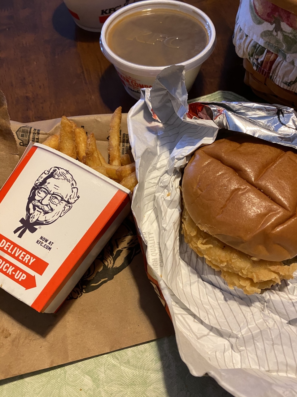 日本のケンタッキーと比べると何故か味が違う感じ、チキンフィレサンドも おおざっぱな感じで中のピクルスが固くて食べられなかった値段もハワイ用なのか高い。