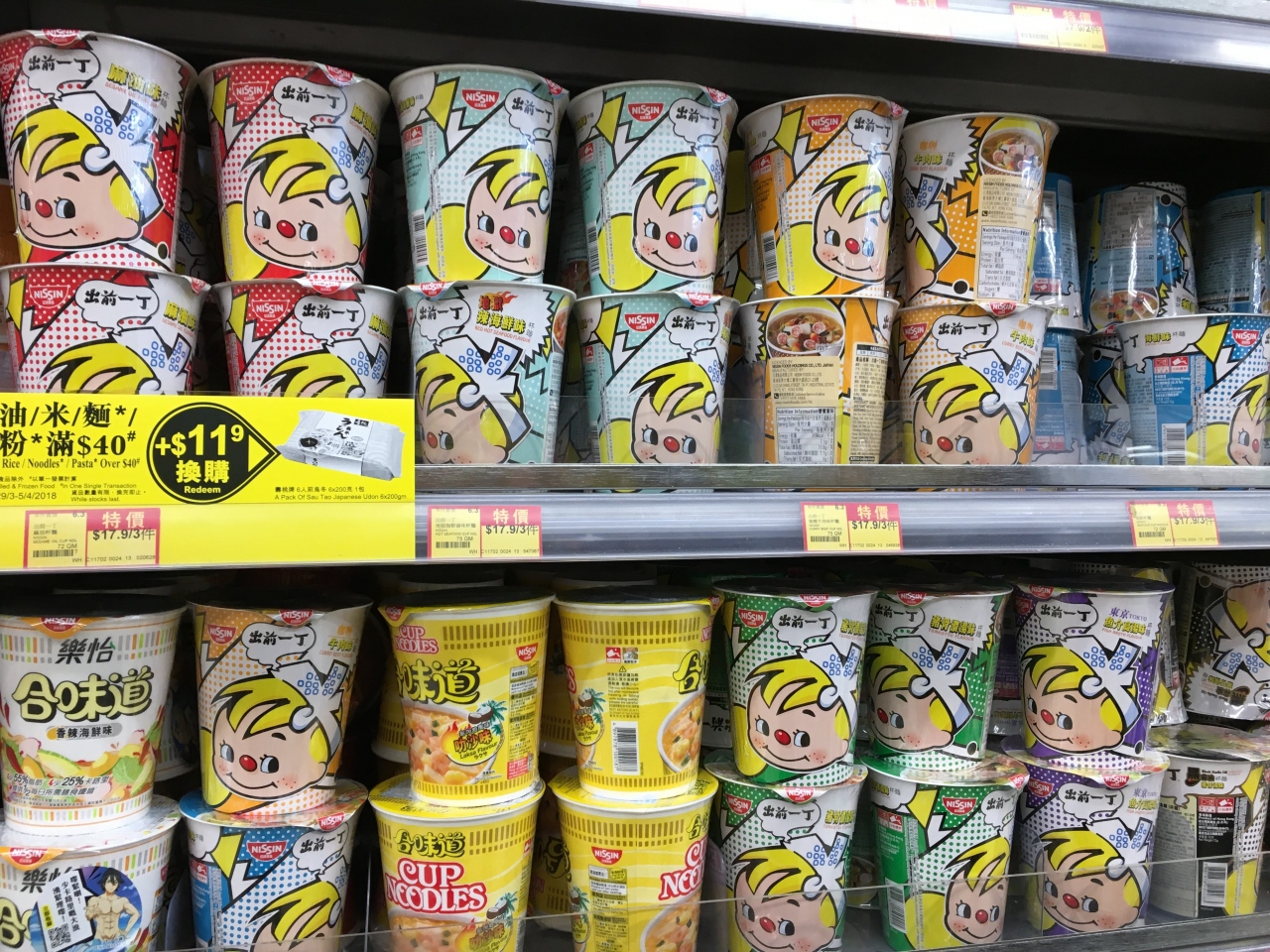 - 香港ならではの果物などもありますが、圧巻はやはり香港で人気の出前一丁の見たことないバージョンの種類の多さに代表される日本の食品の現地版!
