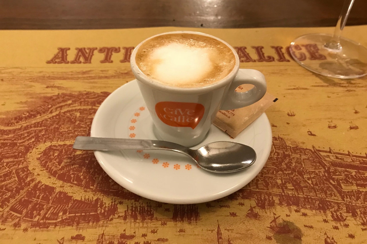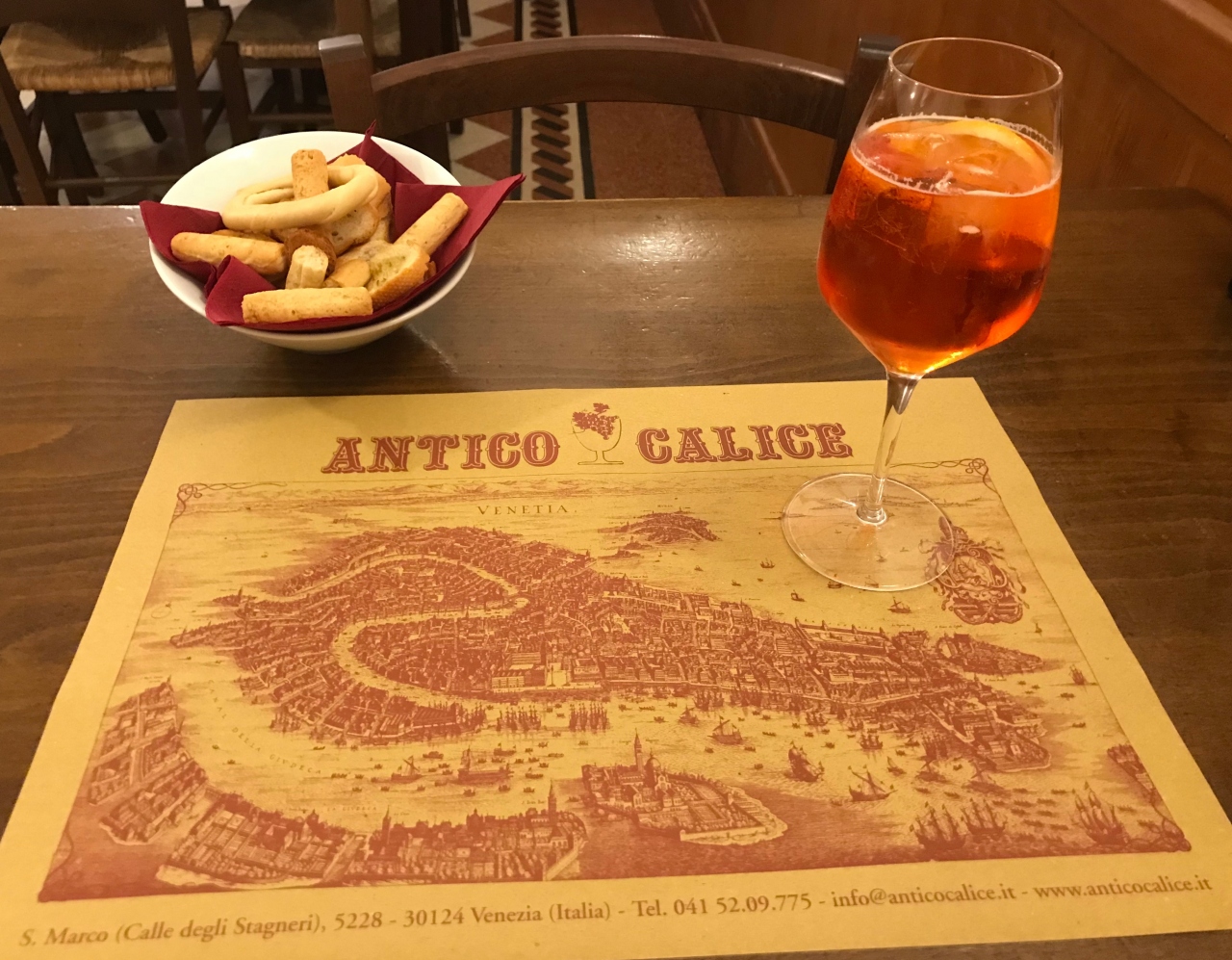 ヴェネツィア発祥のカクテル"Spritz"とカフェマキアートもいただいて、チップ込みで54ユーロでしたので、ヴェネツィアという土地柄を考えればリーズナブルな料金だと思います。