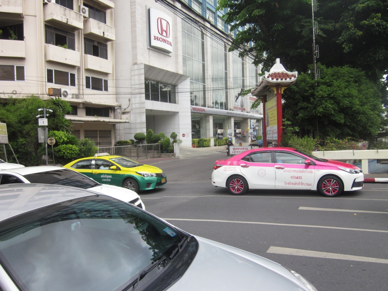 深夜到着便でしたので、バンコクに到着して、市内へはタクシーで向かいました。タクシー乗り場に、チケットの券売機があって、そこで番号札を取ります。市内へは30分程で着いたと思います。