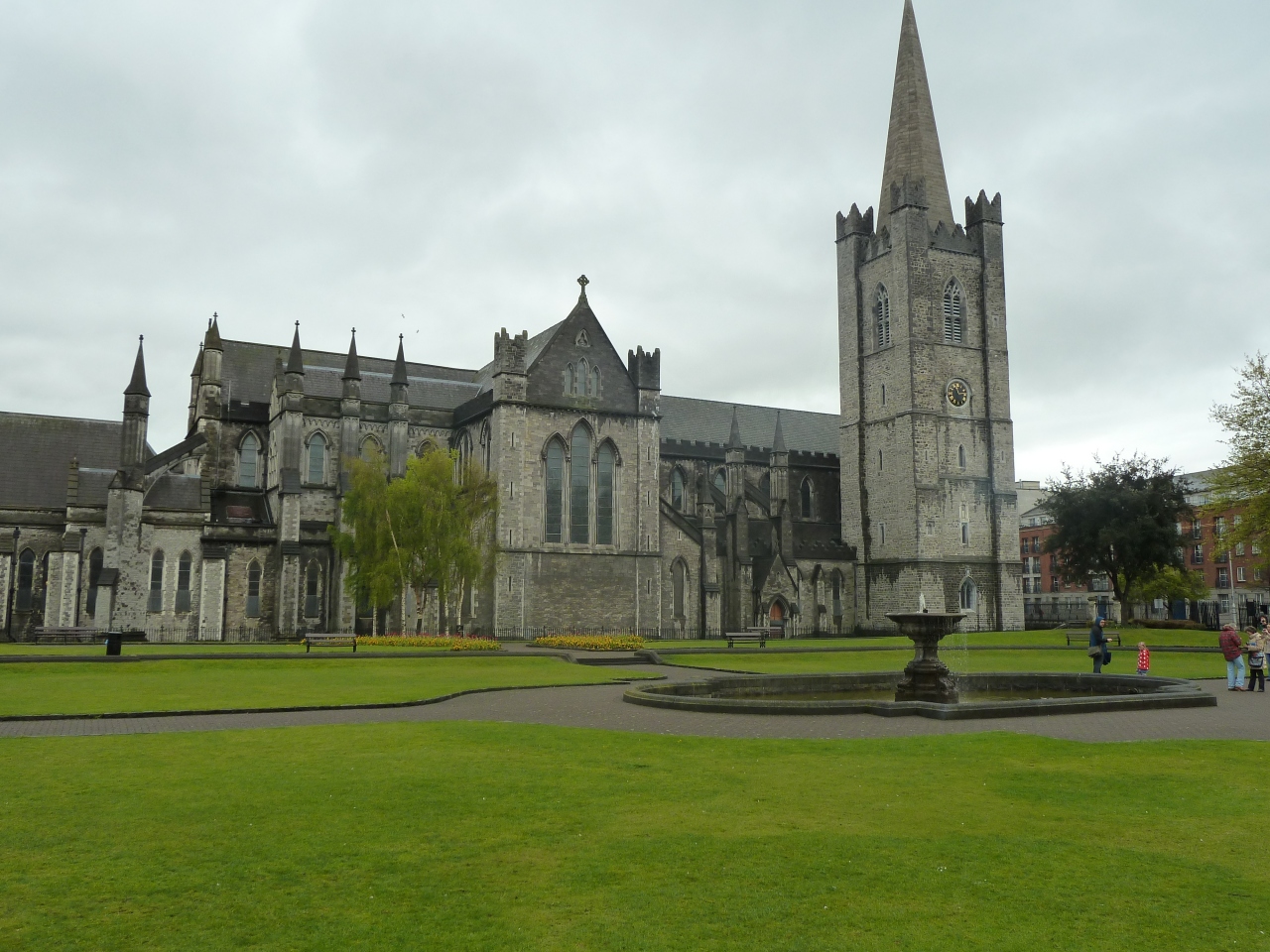 ダブリンには国教会の大聖堂が二つあり、もうひとつはクライストチャーチ大聖堂です。この大聖堂は1191年に創建され、アイルランド島全体でも最大の教会でゴシック様式の壮麗な外観が美しく、高く聳える尖塔が印象的です。ガリバー旅行記の作家ジョナサン スウィフトが18世紀に司祭をしており、彼の墓と墓碑銘もこの大聖堂にあります。