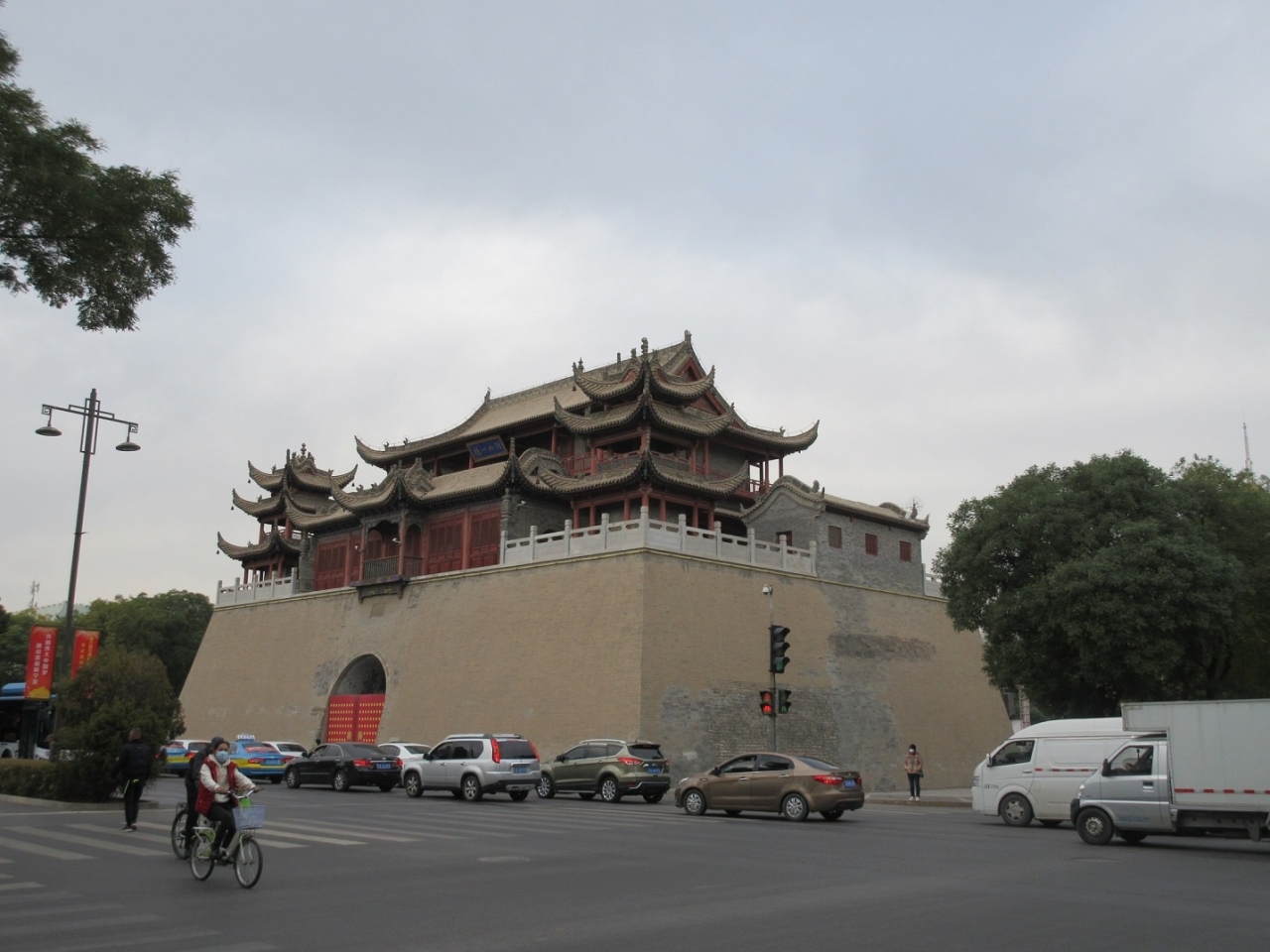 銀川の中心である鼓楼から東に100mほどの場所にあり、台座の上に清王朝の頃の楼閣が残っていました。入場券売り場はどこかと見回したのですが見当たらず、登り口の掲示には「免費(無料)」と書かれていました。無料での見学が申し訳ないと思うほど、立派な建物でした。楼閣からは銀川の繁華街のにぎわいを眼下に見ることが出来ました。