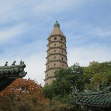 西夏王国の時代に建てられた承天寺塔が有名で、華美にならずシンブルな味わいがあります。鼓楼からは徒歩圏内ですが、思ったより見学者は少なくて落ち着いて見学が出来ました。現在残る塔は地震での倒壊後の19世紀の初めに再建された物とのこと。塔の中には急な階段があって、上に登ることが出来ました。