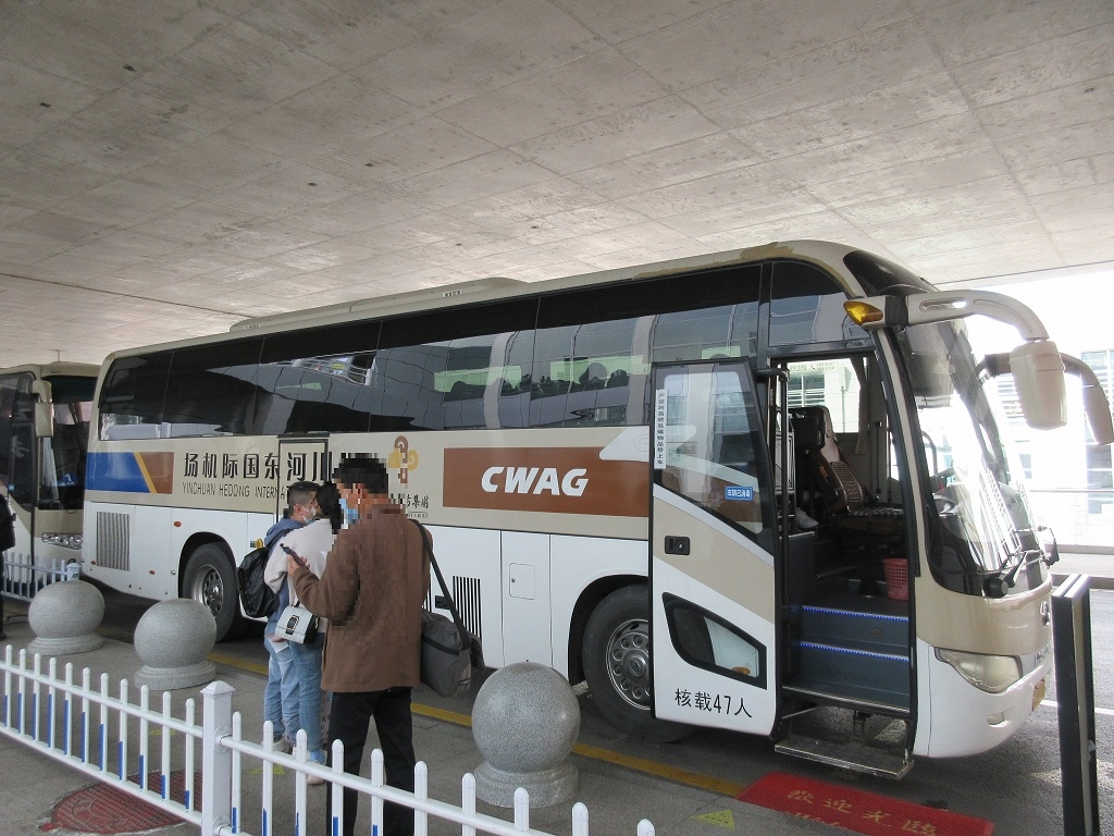 銀川の市内からおよそバスで30分ほどの距離にあるコンパクトな空港です。バスは片道20元で、およそ30分おきに出発していました。また、離着陸の際に飛行機からは、黄河の流れを眼下に見ることが出来ました。空港内にあるレストランは味の割に値段が高いと思います。路線は上海や北京などをはじめ、新疆ウイグル自治区のウルムチなどとも航空路線が結ばれています。