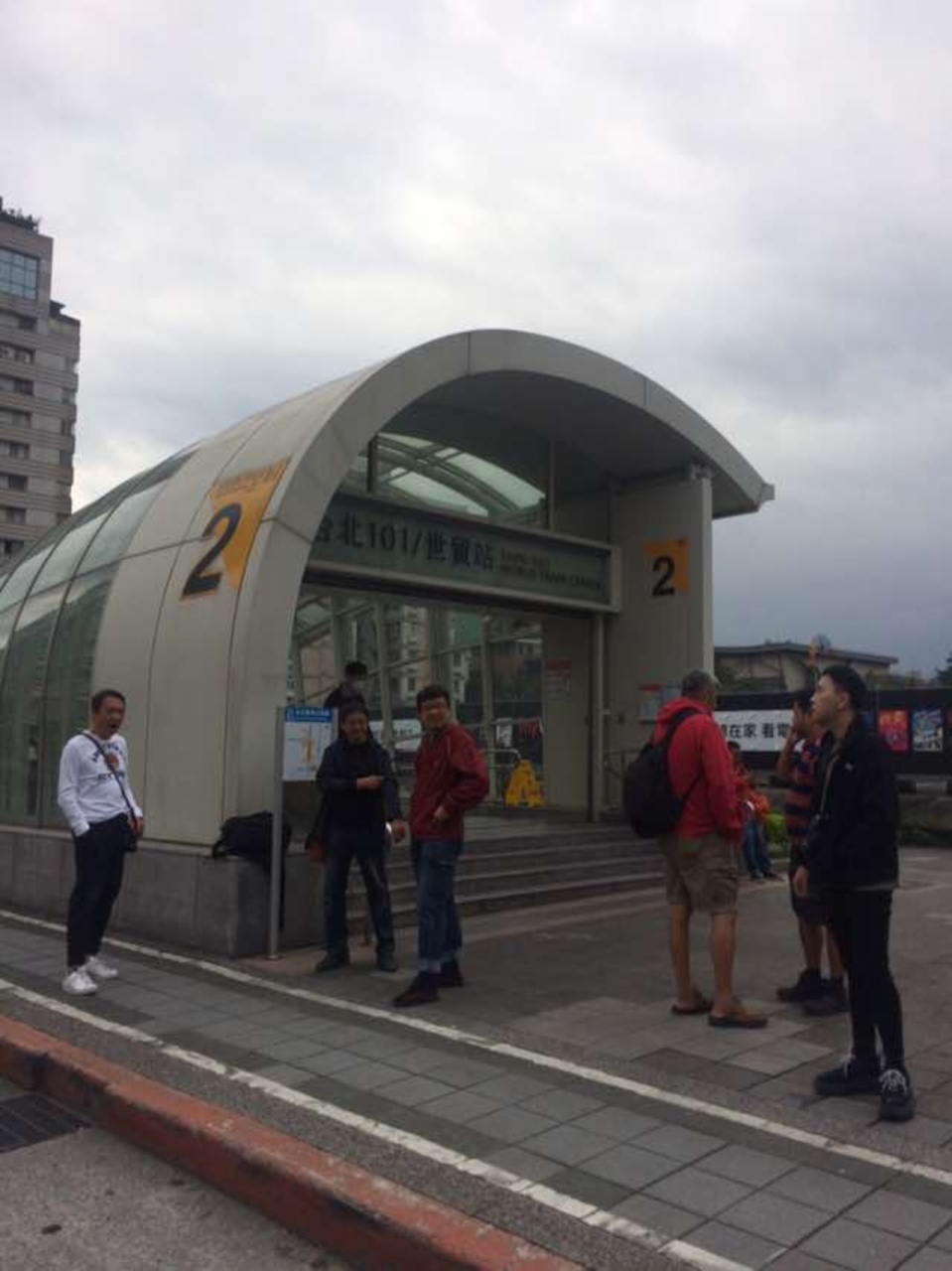 出口からあがると、駅名のとおり、101が近くにあり、空まで101が見えました。ショッピングモールがかなり隣接して建っているので、乗り降りする人も多かったです。台北の赤いルーフトップバスも走っていました。