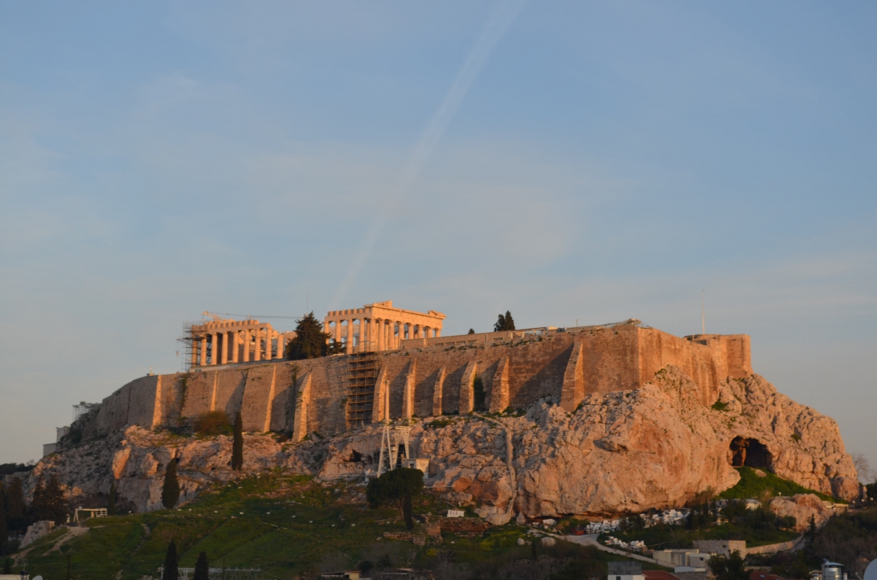 四半世紀ぶりのアテネ訪問でした。宿を、アクロポリスとゼウス神殿遺跡の間という場所に取りました。部屋のバルコニーからはゼウス神殿の列柱を眺め、最上階の朝食会場からはパルテノン神殿が真っ正面に見えるというので、市内観光を済ませた気分になってしまいそうでした。宿の立地は、市内観光にとって大事な選択肢です。