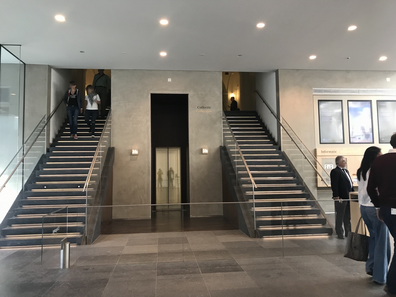 美術品の並ぶ展示室は往年の栄華を思わせる重厚なインテリアですが、半地下のようなエントラスはとてもモダンでタイムスリップしたような気分になります。