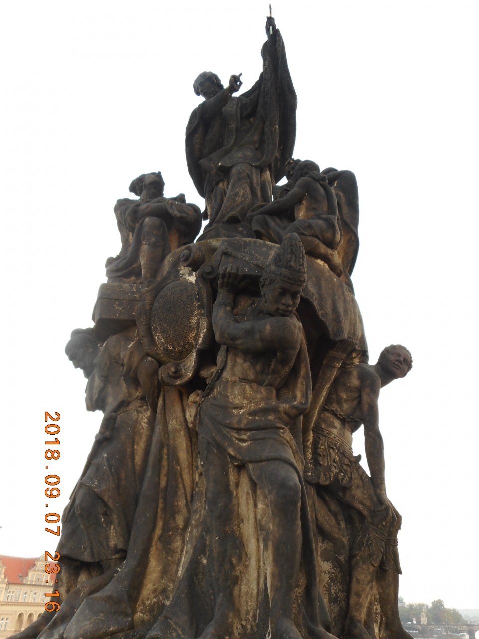 ブルタヴァ川に掛かるカレル橋の欄干にたくさんの聖人像があったのですが一番人気は聖ヤン ネポムツキー像でした。他の像を一人ずつ見ていったのですが、名前を知っている人はほとんどいませんでした。かろうじて分かったのがフランシスコ・ザビエル像でした。ザビエルさんを担いでいる人物の中に日本人が居るとガイドブックには書かれていたのですが、よくわかりませんでした。