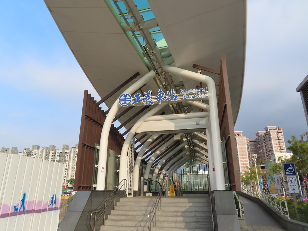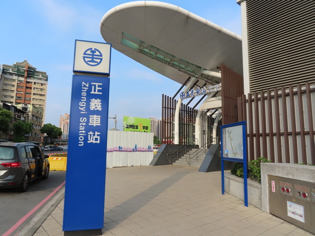 ポタリングの途中で立ち寄りましたので、構内には入らず、外から見た印象です。正義駅は、屏東線の高雄市内地下化に伴い、2018年10月14日に新設された、正義路と澄清路の間の大きい駅で、出入り口が二か所にありました。
