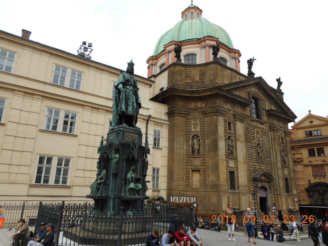 ブルタヴァ川に掛かるカレル橋の旧市街側にあるカレル4世の像のすぐ北隣にあった緑のドーム屋根が目立っていた教会です。日本のガイドブックには聖フランティスク教会と紹介されていました。カレル4世の像の背景として教会の写真を撮るとかなり良い写真になりました。