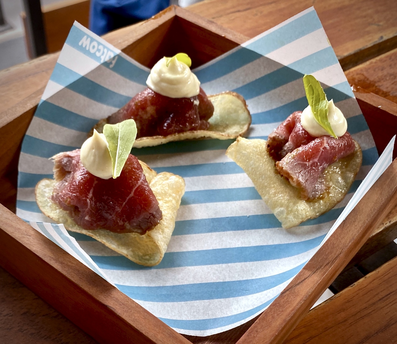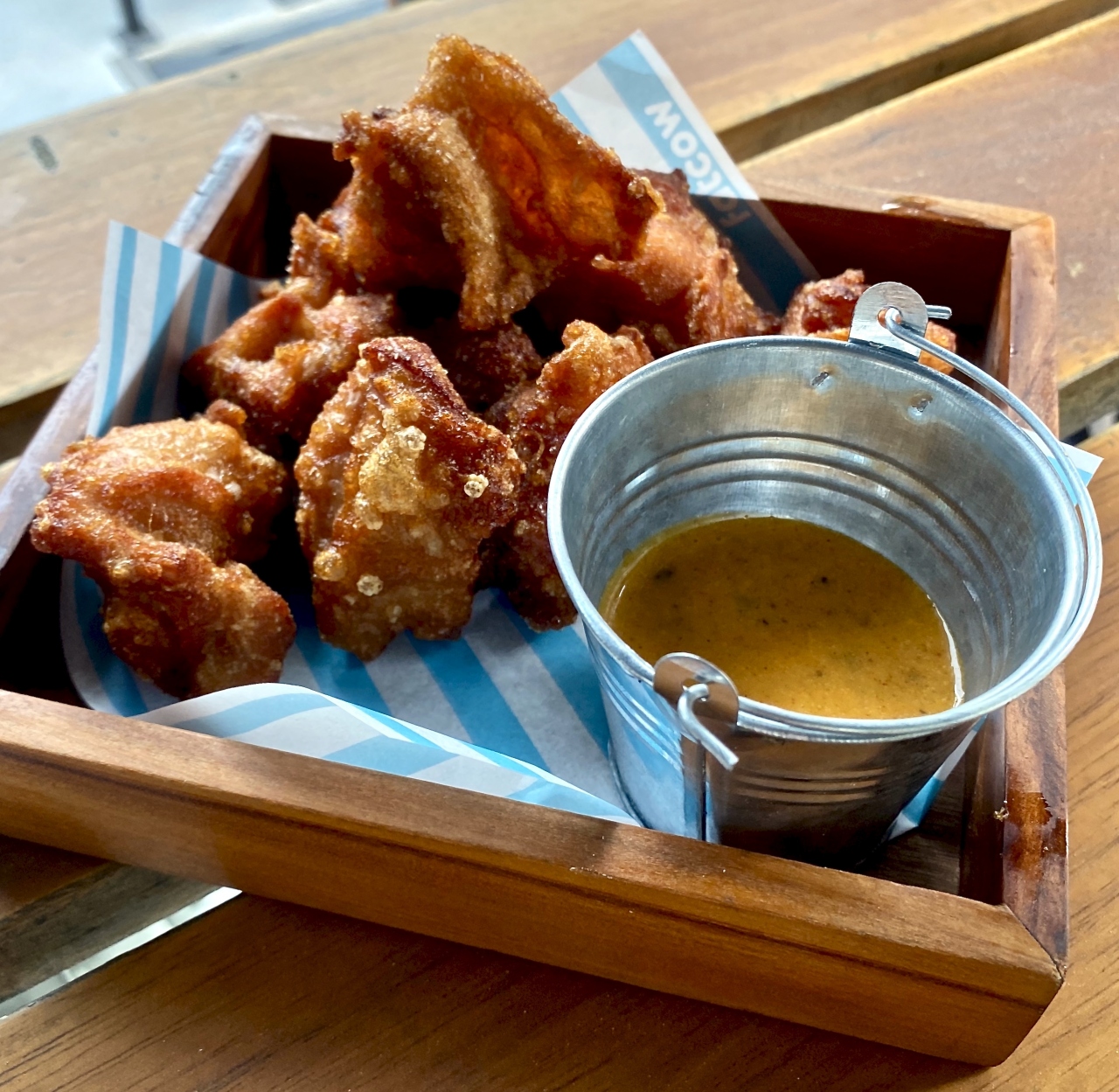 「KFC」というなのチキン唐揚げ(ギャグ?)、そして「コッシーニャ」と呼ばれるブラジルコロッケに代わり蛸入りの「タコシーニャ(ブラジル文化のコッシーニャと日本文化のたこ焼きの融合とでも言いましょうか)」と言うのもお勧めです。恐らく、この店でしか食べれません~笑)