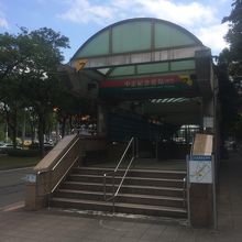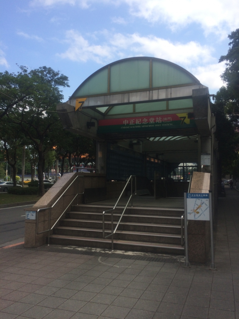 中正紀念堂の最寄り駅で、中正紀念堂公園に直結している門は、中正紀念堂と同じような白い壁に青いアクセントの壁になっていました。とても便利でした。赤い屋根の演芸ホールもすぐで、観光客には便利で嬉しい駅でした。