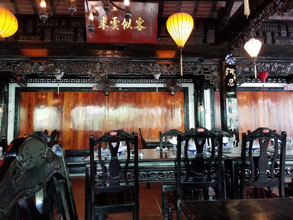 旧市街より北西のBa Trieu通りに在るクラシックなベトナムスタイルのレストラン。中国風の建物の二階で昼食をいただきました。ホワイトローズ・揚げワンタン・カオラウの三大名物はじめ、魚や肉串など品数多くが提供され贅沢なコースでした。接客も親切で、体調の悪かった自分には好意で白がゆを持ってきて頂きましたがほとんど食べられず申し訳ない事をしました。