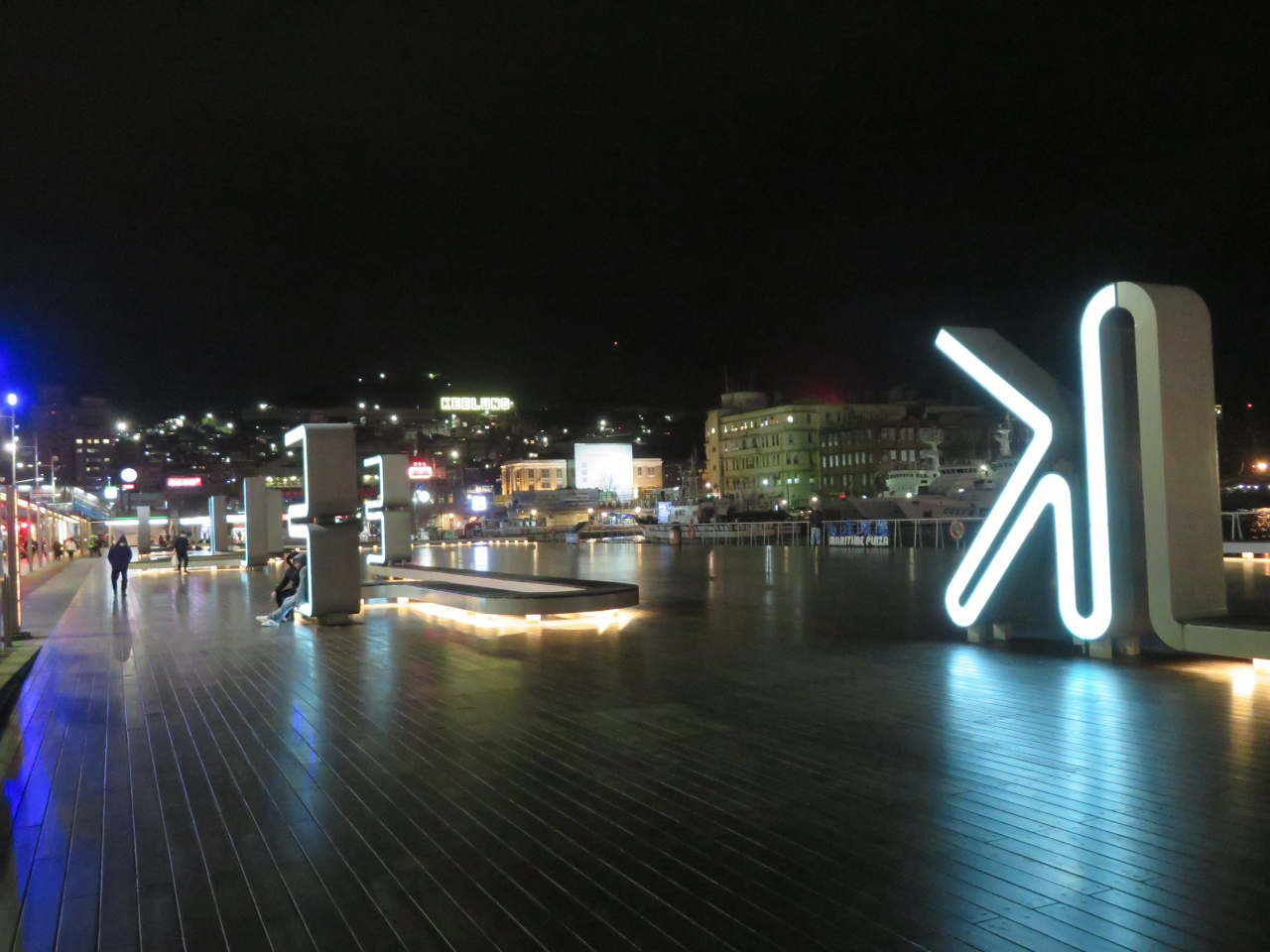 オープンなスペースで、暑い時期でなければコーヒー片手にのんびりしたいような場所です。夜はライトアップされて綺麗でした。