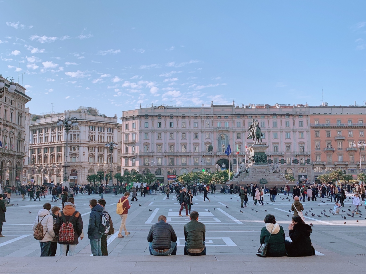ドゥオモの前の広場です。いつも人いっぱいのイメージですが、1月の平日昼間はゆとりがあり優雅な気分になります。夕暮れタイムだとちょっと学生のような気分にもなれちゃいますね。とはいえ危険な人も多いようなので油断は禁物