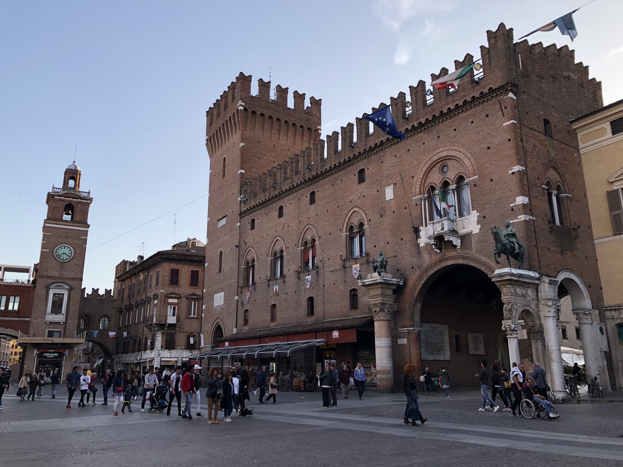 サンジョルジョ大聖堂とともにカテドラル広場に面しており、周りの建物と同様に赤いレンガ造りで夕陽を浴びた姿は趣がありました。いわゆる市庁舎で、市庁舎内にはまた別の広場(ムニチピオ広場)があり、カテドラル広場と通じる通りが市庁舎建物をくぐるように貫通しており、興味深かったです。