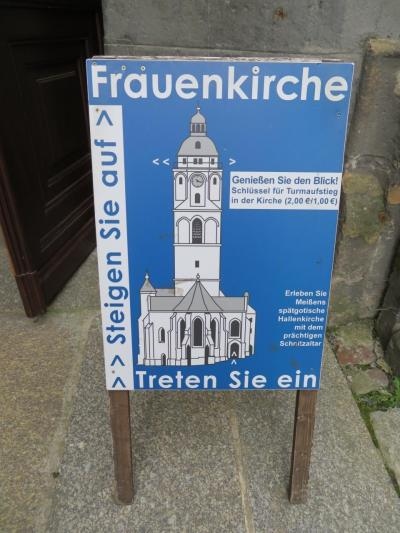 Meissen マイセン ブルク通りは駅を背にバーンホフ通りを右に進み、アルトシュタッ橋を渡り、エルプ通りを直進すると左手に見えて来ます。フラウエン教会は、後期ゴシック様式の教会です。※塔に登る事が出来ます。私達は時間が足りず、断念しましたが、きっと、