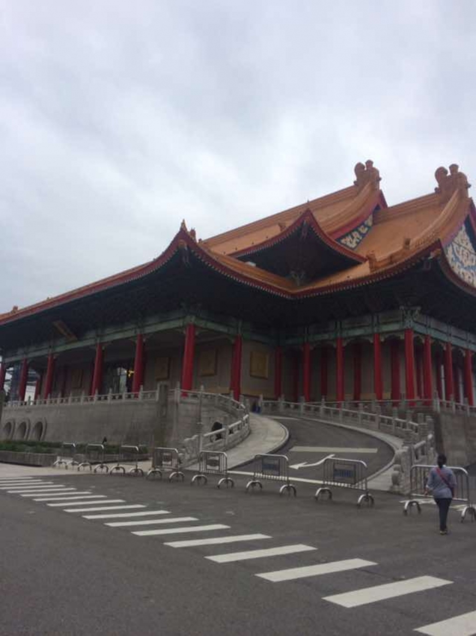 中華式の赤い屋根の建物が見たければ、かなりおススメの高いのが国家戯劇院ともう一つの国家音楽廰です。2軒同じ建物が向かい合って立っていて、真ん中から中正紀念堂が見えました。MRTの駅は中正紀念堂駅でアクセスが良いです。