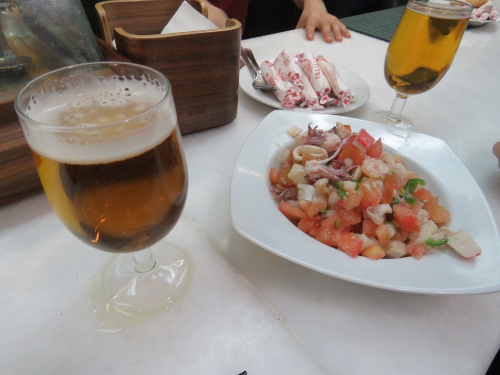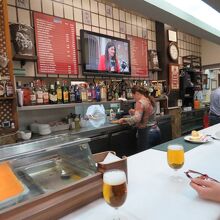 コルドバ旧市街からグアダルキビル川を渡った先に有るバルです。人気の店の様で、お昼時でもありましたが、テーブル&カウンターほぼ満員でした。カウンターに隙間を見つけて何とかポジションをゲット。タパスはスペイン定番からご当地グルメまで色々揃い、ひと皿のボリュームたっぷりでランチ代わりになりました。