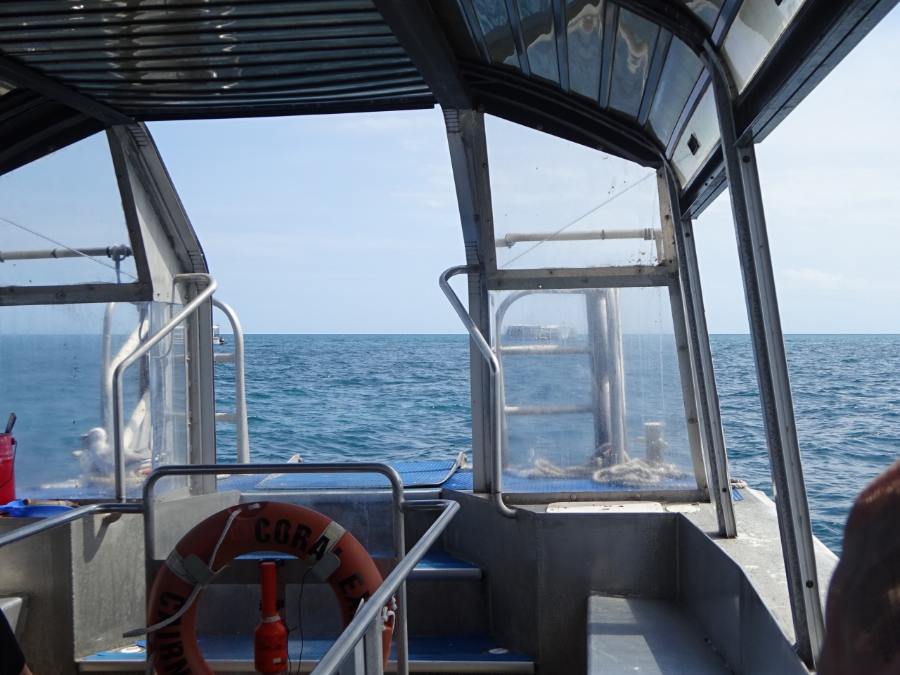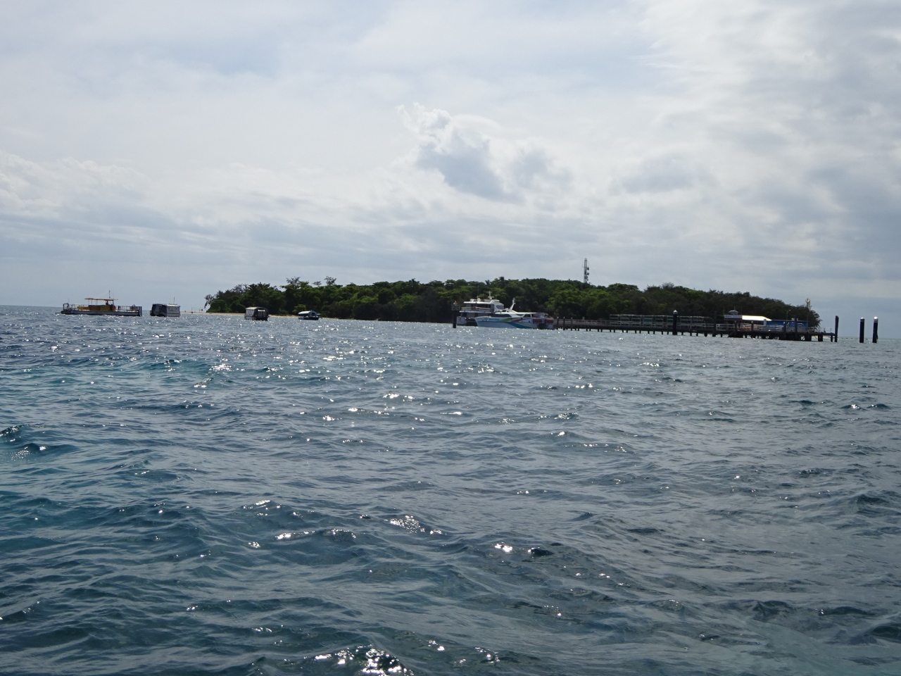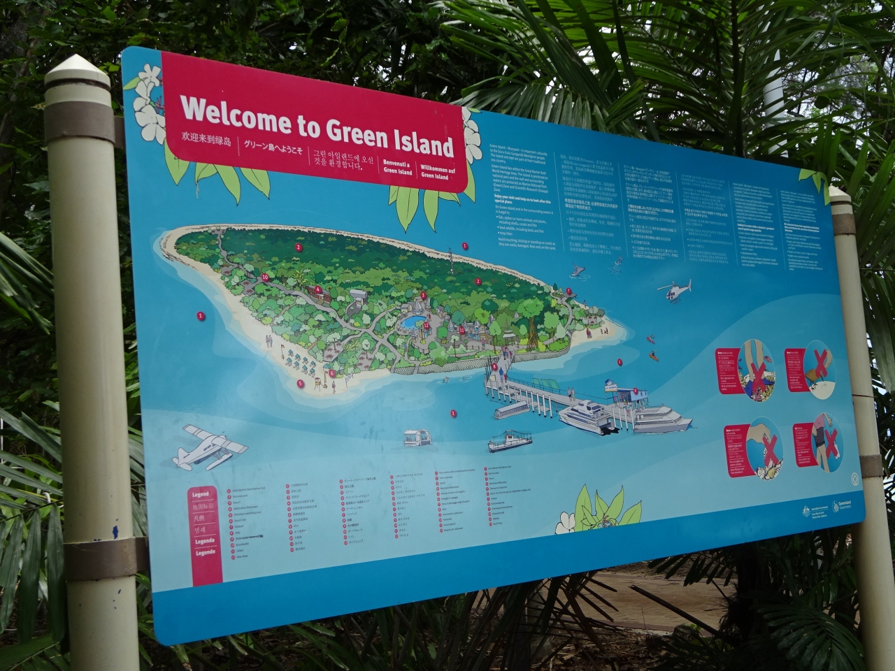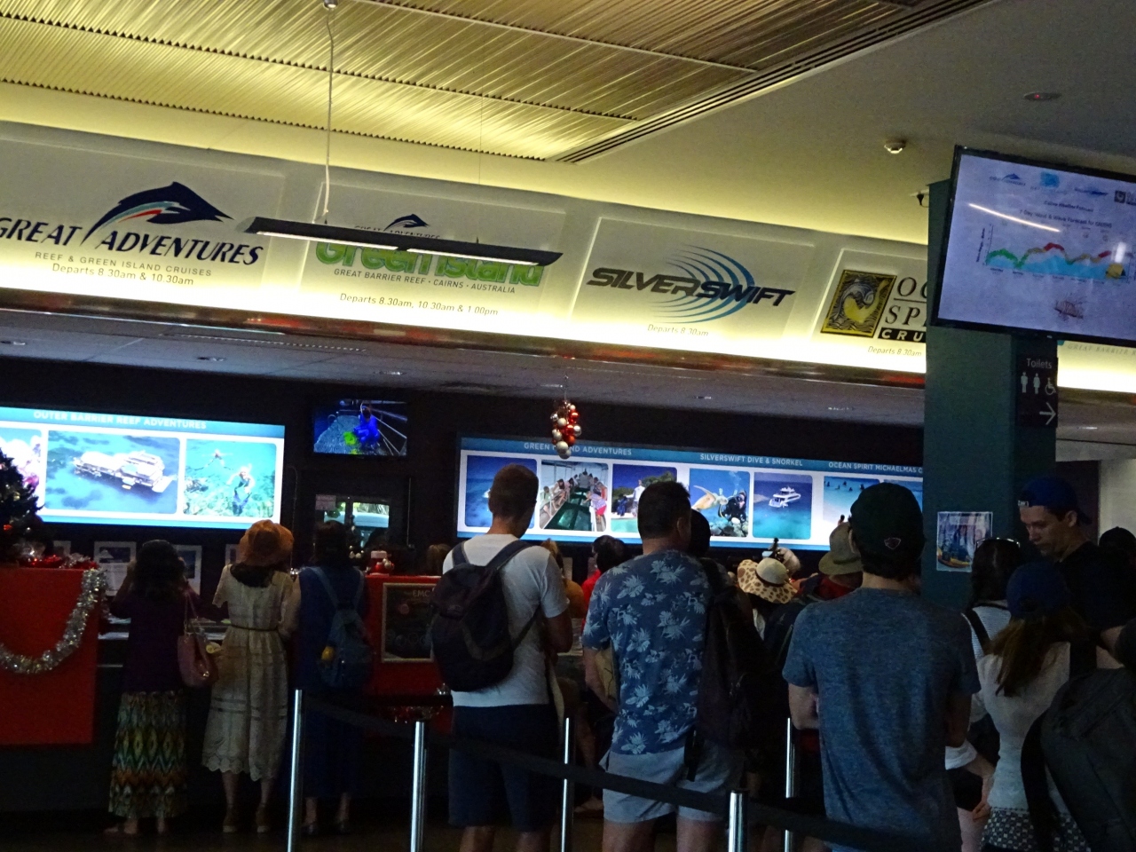 ケアンズ旅行の到着日に、現地ツアーで訪問しました。飛行機のケアンズ便は遅延とかキャンセルとなる事があるので、数時間前までキャンセル可能なツアーを選択しましたが、予定とおり到着してチケットカウンターでチケットを発行して貰ってグリーン島まで半日観光に出かけました。