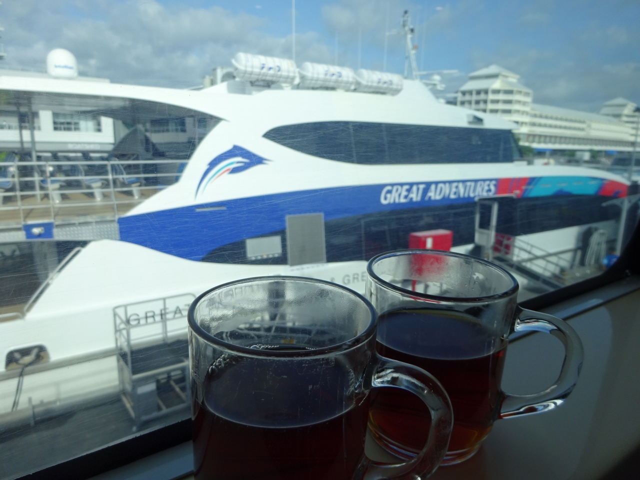船が揺れて船酔いする事もあると聞いていましたが、問題なかったです。天気が良くてグラスボートに乗ったり、島内を一周したりして過ごしましたが、行ったのが12月だったこともあってビーチの気分ではなかったので泳ぎはしませんでした。ですが、ビーチで楽しんでる方もかなりいました。昼食は、島内のレストランで南国の雰囲気満載で楽しく食事出来ました。