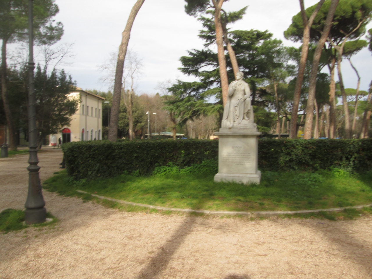 手入れされた緑がたくさんあり、都会の喧噪から離れてリラックスすることができます。ポポロ広場から階段を上ってこの公園に入ると、ちょうどサンピエトロ大聖堂が見渡せました。ところどころに偉人の彫刻が点在していましたので、ヨーロッパらしい公園の散策を楽しみました。