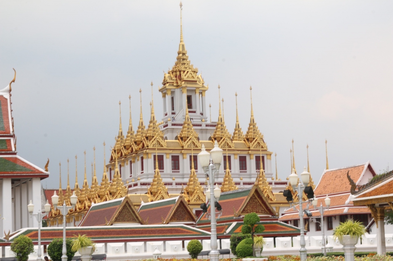 寺院の敷地内にあるロハ・プラサート(鉄の城)が有名です。地上37m、37基の尖塔の屋根が金色に輝いています。ラーマ3世(1846)にスリランカの影響を色濃く残し建立。ここは仏塔で頂上まで登れ寺院内全て無料。