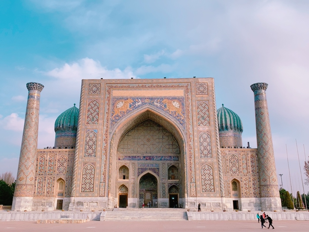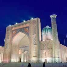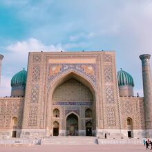 レギスタン広場の向かって右側に建つ、1636年に完成した、シェルドル・マドラサ。 ウルグ・ベク・マドラサを模して作られたそうです。
