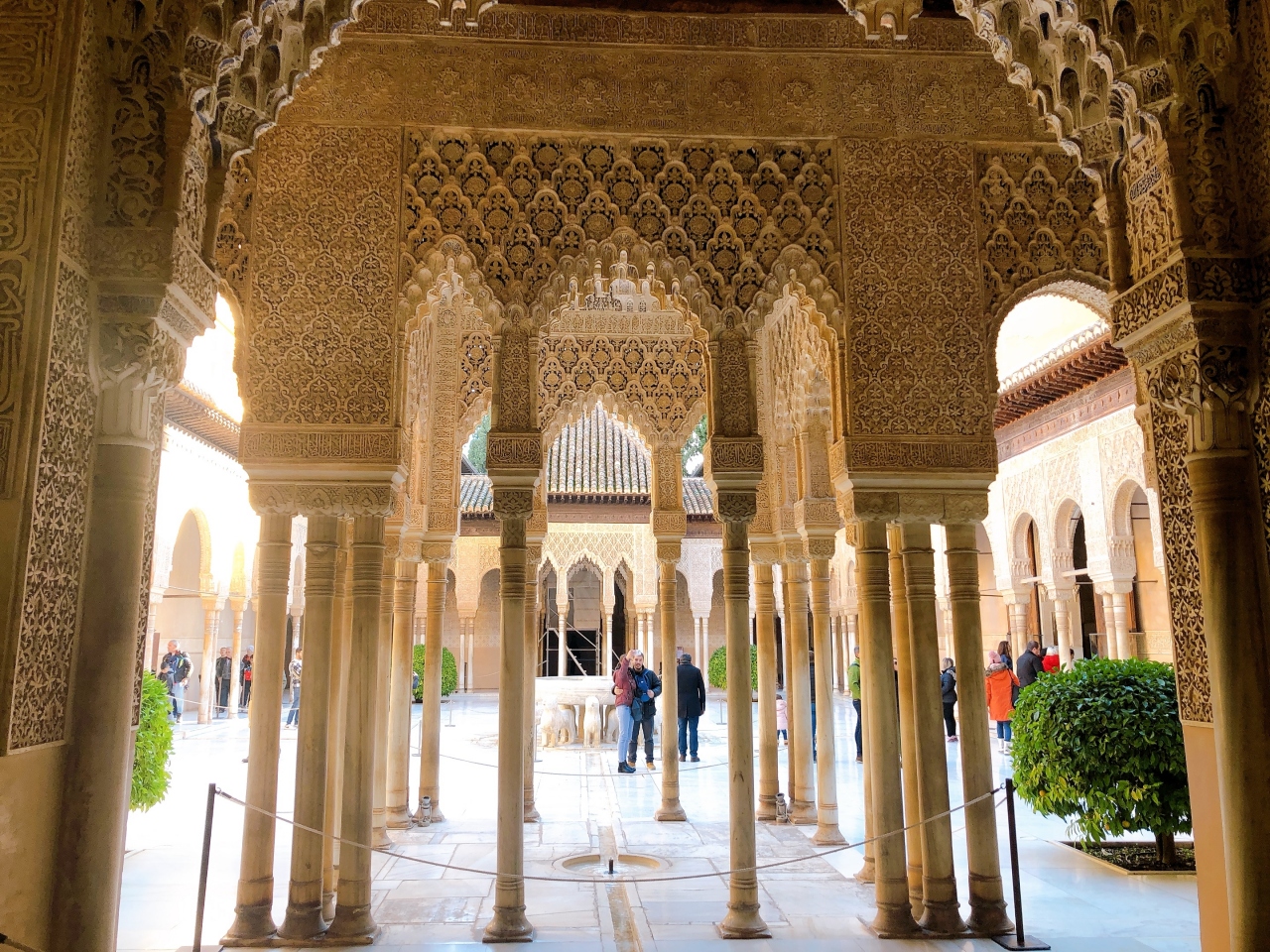 庭の周囲は美しい装飾の柱で囲まれており、その精緻な作りに驚きます。