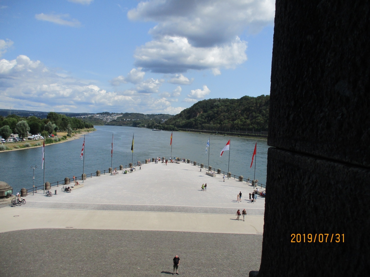 ライン川とモーゼル川の合流点の三角形のところをドイチェスエック(ドイツの角)というようです。ゆったりと流れる川の流れと周囲の緑の景観を楽しめる場所です。対岸の城塞の上からこの場所を眺めると、もっと素晴らしい景観でした。