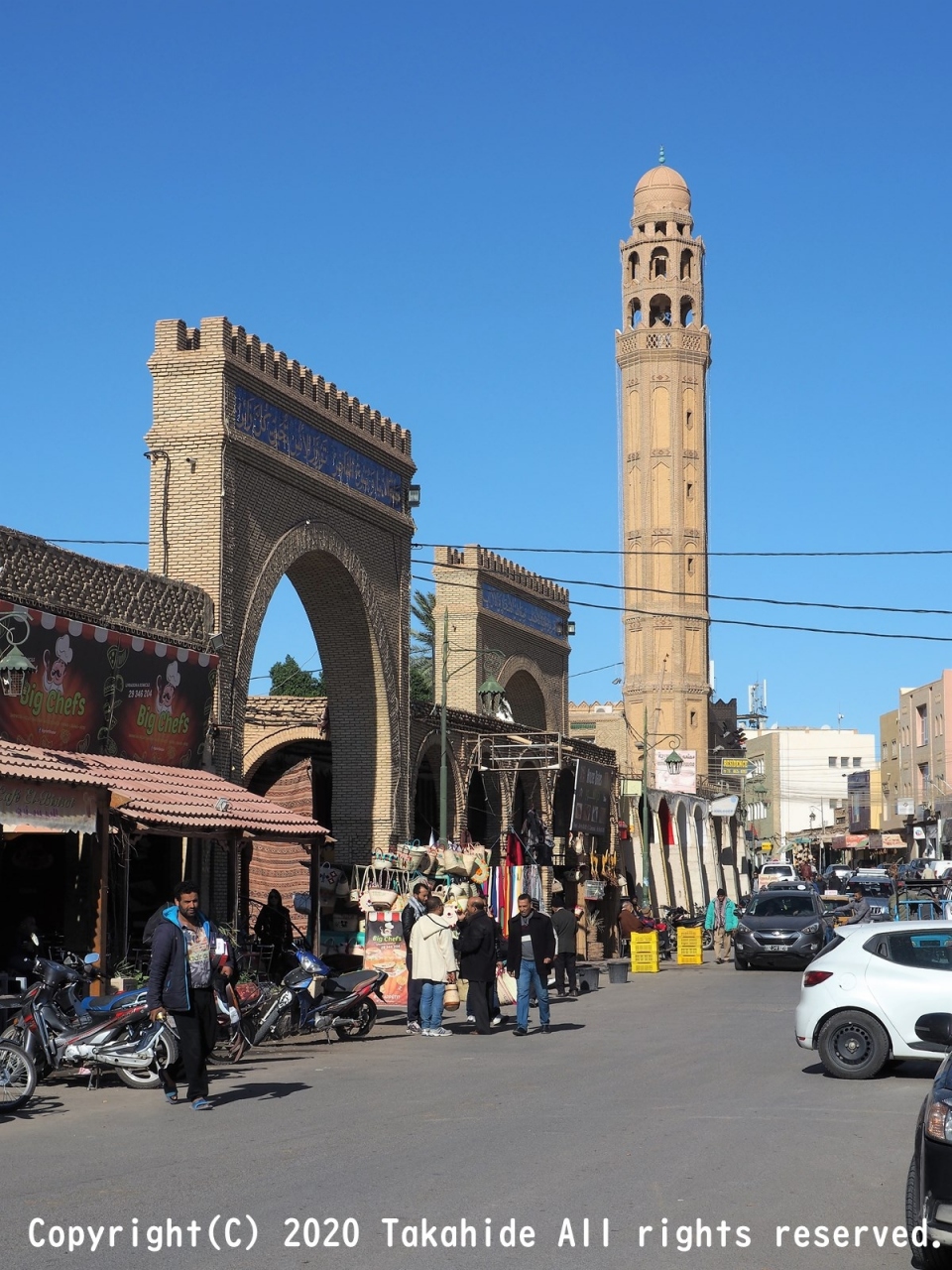 中央市場より北側に進めば、左手にファルコスモスクがあり、右手には地元民向けの店が並んでいます。さらに進むと左手を入ったところにアルザウィア・カーディリー・モスクがあり、国道にぶつかります。