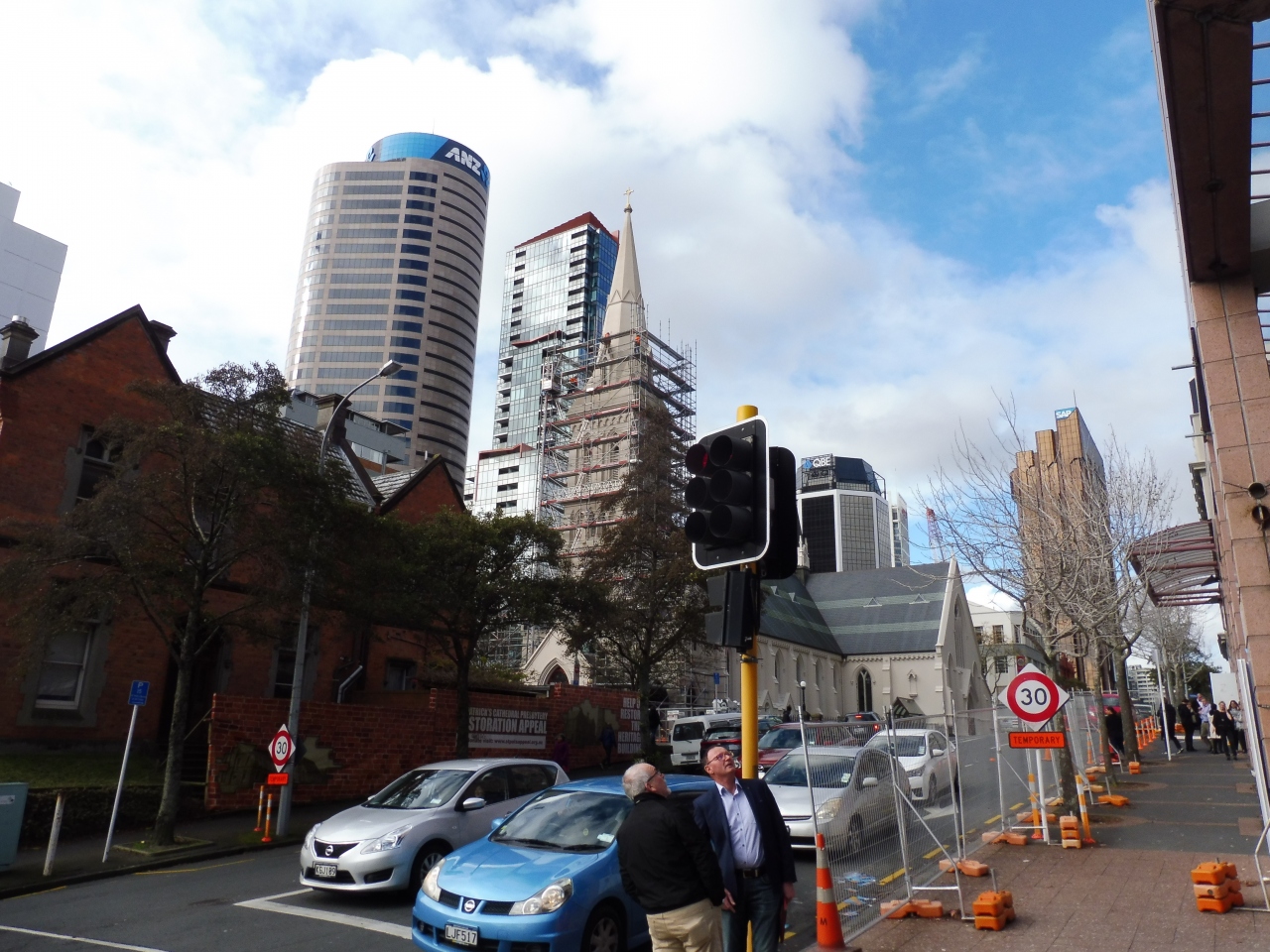 オークランド中心部の南北に走る繁華街のメインストリート・クィーンズストリート、その1本西側の現在地下鉄工事中のアルバートストリートその先に有るのがこの聖パトリック大聖堂です。
