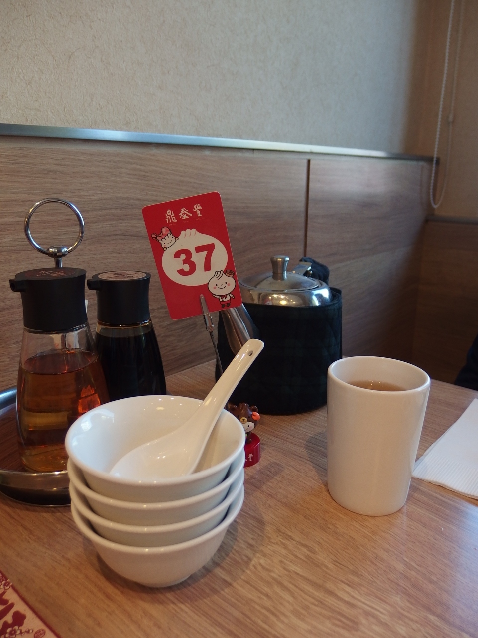 台北旅行数回目にしてやっと訪問できました。お昼時だったので、一時間待ちくらい。先に注文して、順番を待ちました。注文するときは、メニューと注文票を渡してくれるので、ゆっくり選ぶことができます。席に案内されると、すぐに注文済みの小籠包が出てきます。私のテーブルではたれを作ってもらえましたが、別のテーブルではほぼほぼ説明が無かった様子。おそらく放置。小籠包はよくテレビで見る「あちあち~」ではなく、おいしかった、けど、フツウ。他に注文した炒飯やワンタンスープの方が却って美味しく感じました。