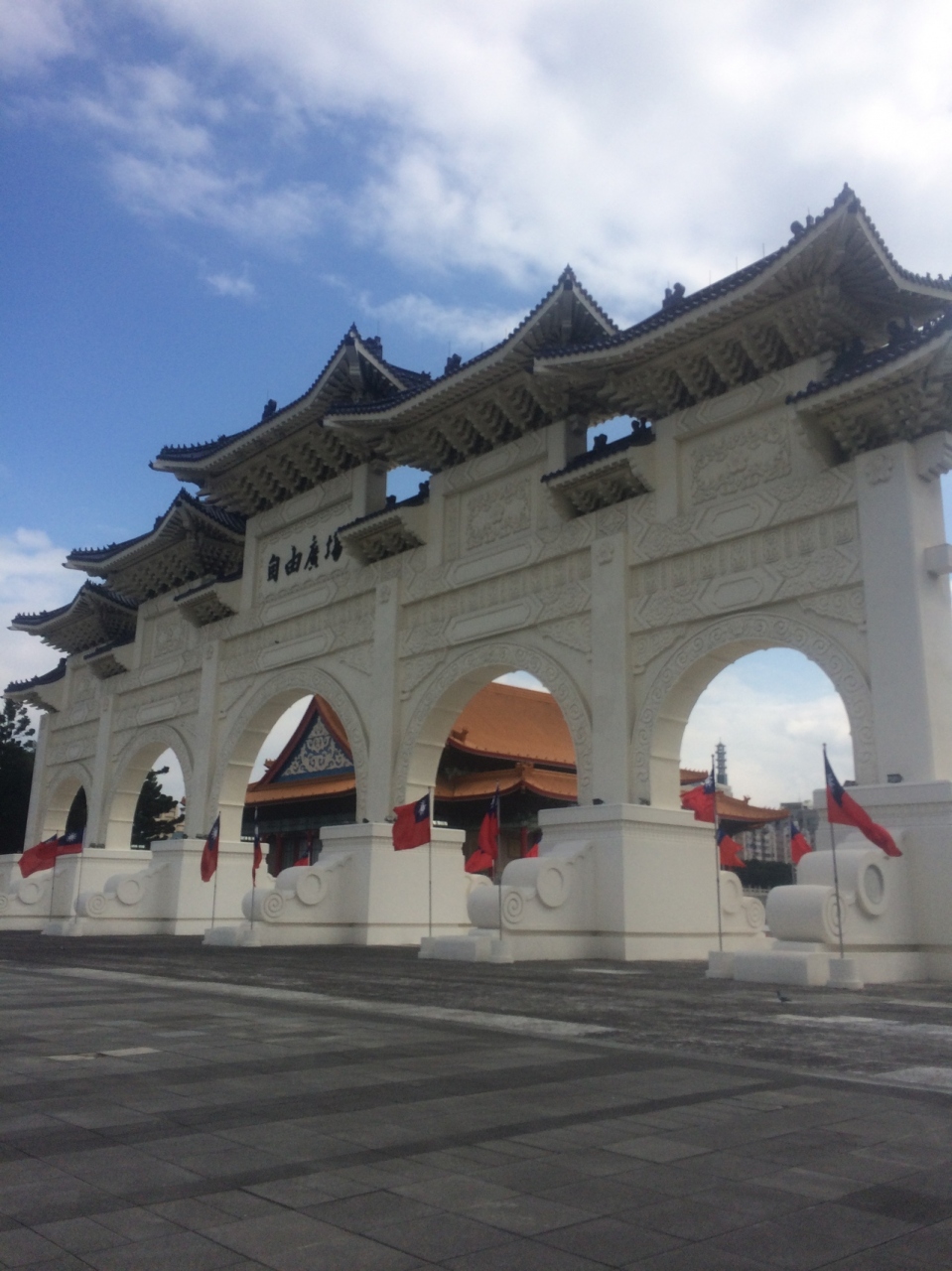 MRTの駅だと中正紀念堂駅の出口、おそらく5番出口をあがっていくと「自由広場」と四文字で書かれている白い門がありました。それが、自由広場門です。台北101と同じくらい台北のシンボルだと思ってみあげました。