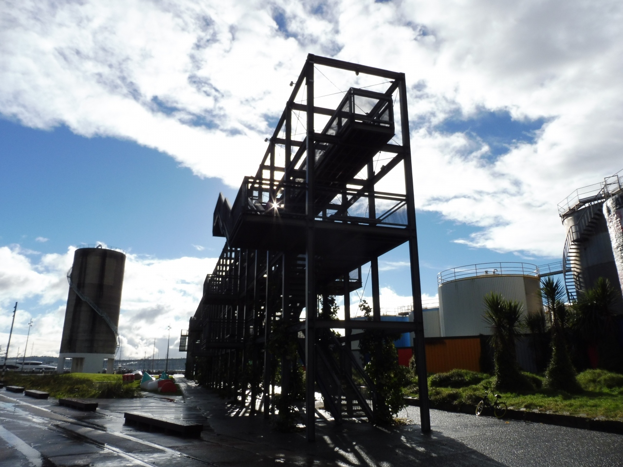 この公園の北側に大きな無骨な鉄骨剥き出しのジャングルジムの様な建物があるのですが実はこれ展望台であちこちに有る階段から上の階へ行けるようになっています。