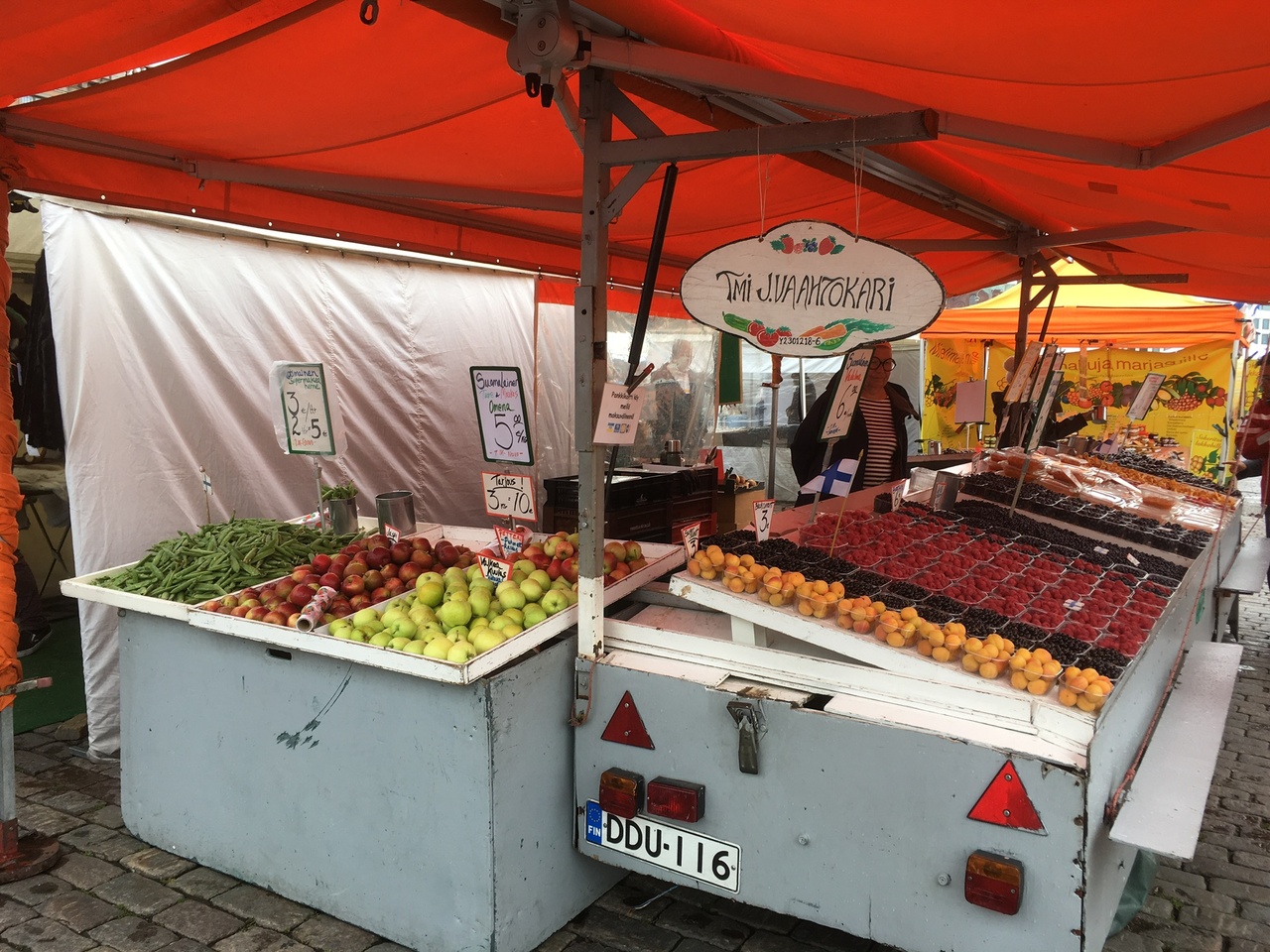 中央駅から歩くと少し時間がかかります。南港の前にあり、そこからスオメンリンナ要塞まで行く船も出ていました。野菜や果物などもありましたが、観光客相手のお土産も沢山売っていたので可愛いニット帽やフリースのマフラーなどを購入しました。