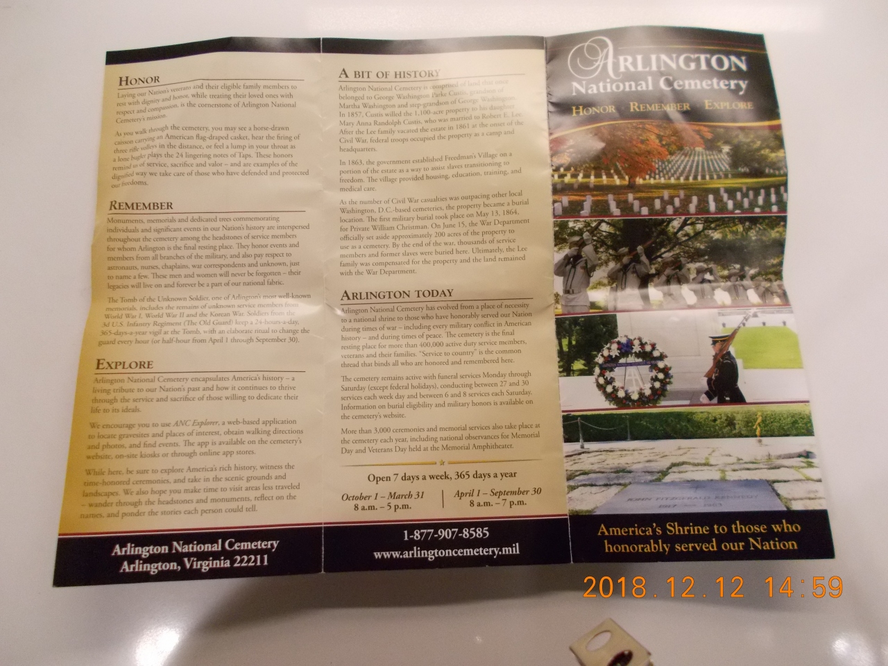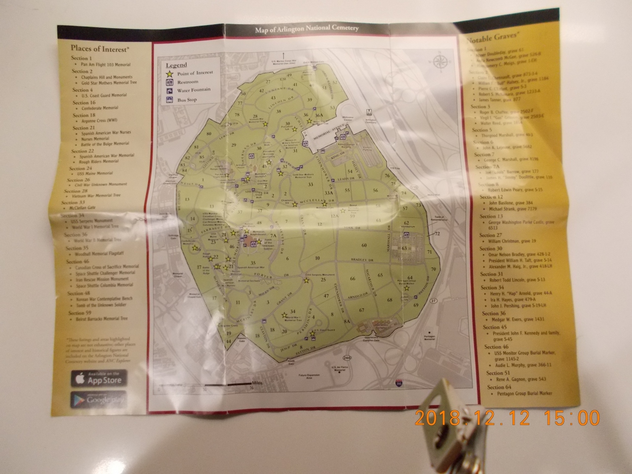 地下鉄のArlington Cemetery駅からすぐの所にある。入口で手荷物検査を受けて入場する。地図を片手に墓苑を散策する。坂を上って丘の中腹にケネディ大統領のお墓がある。沢山のお墓がある中で、無名戦士の墓の前では1時間に1回、衛視の交代がある。また、訪問客がある場合は献花も行われていた。