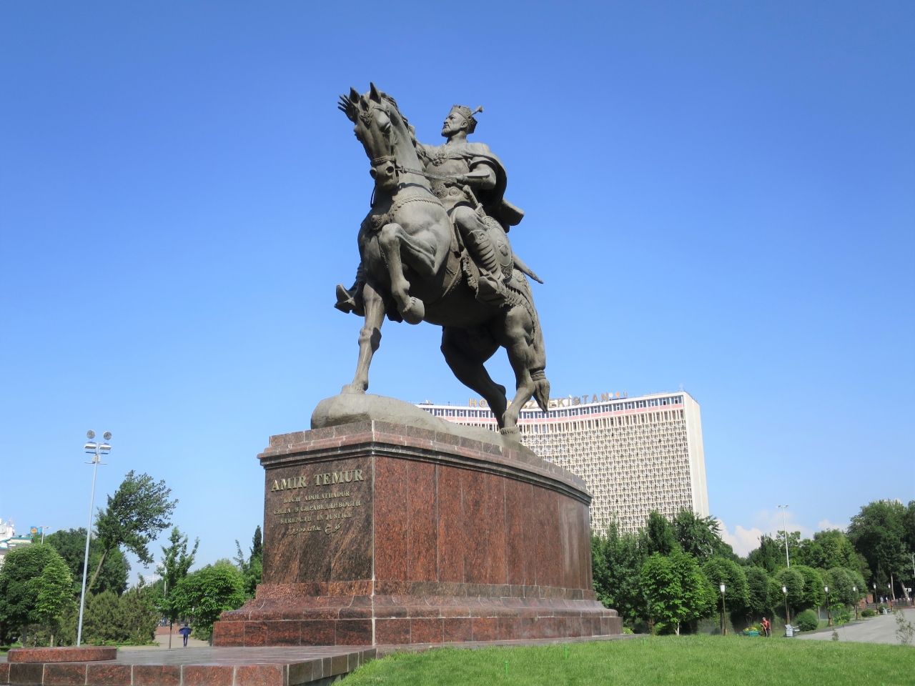 広場のすぐ前にはホテル・ウズベキスタンがあり、ティムール広場の公園から伸びる6方向に道路沿いに歩けば、アライ・バザール、ウズベキスタン歴史博物館、ウズベキスタン美術館、ナヴォイ劇場、ティムール博物館、地学博物館などが徒歩圏内(15分~30分)です。