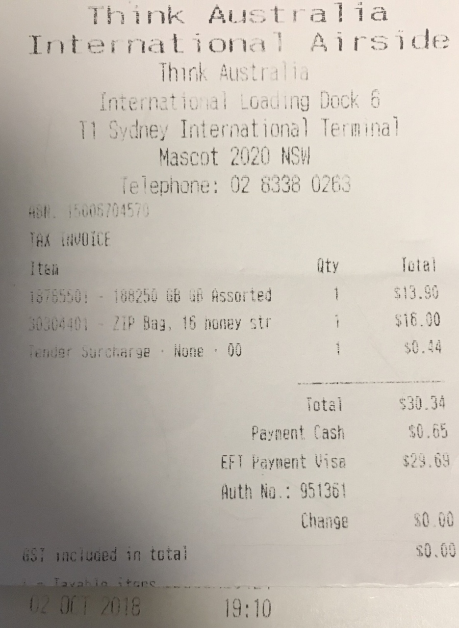 国際線ターミナルのお店でネックピローを16ドルで買いました。