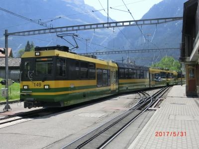 Bahnhof Grindelwald-Grund から11:55発のヴェンゲンアルプ鉄道に乗ります。