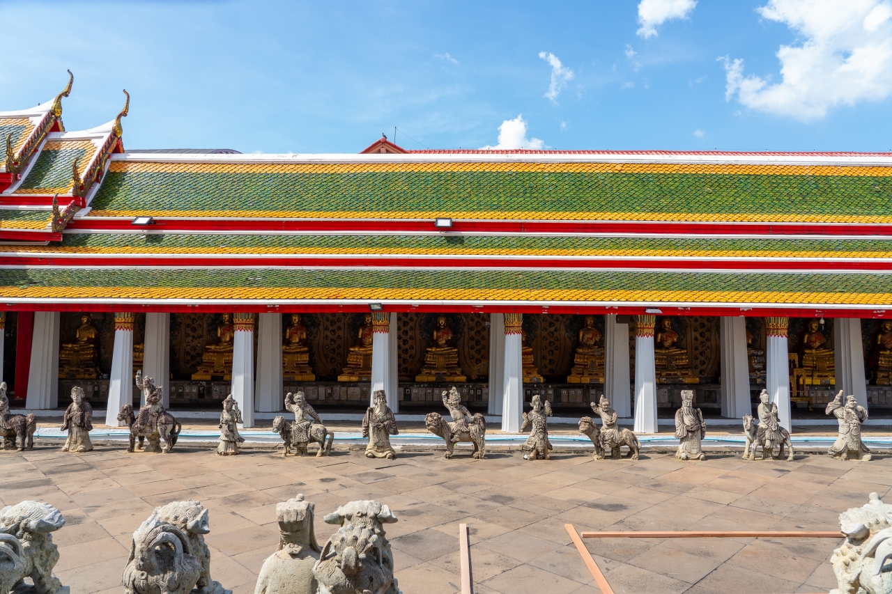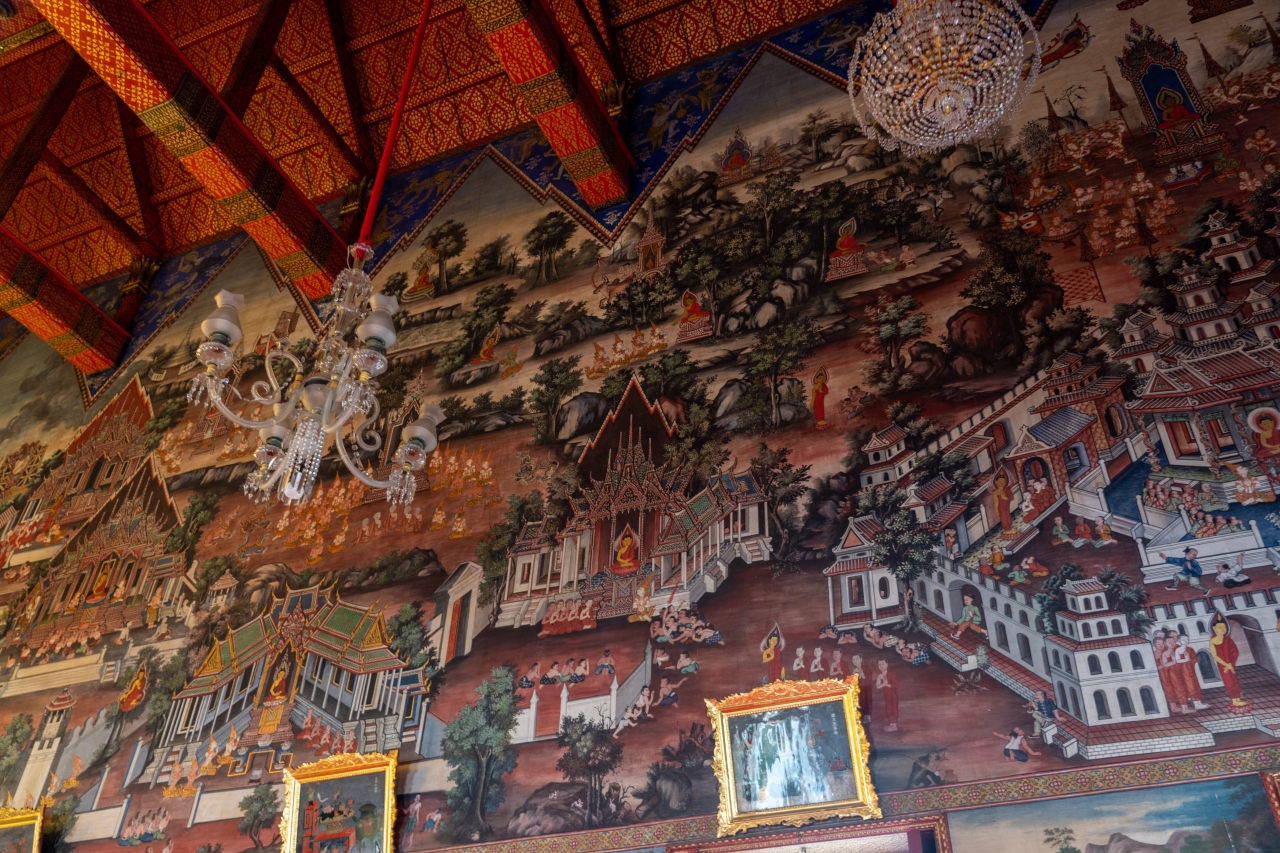 仏塔が立派で目立ってますが、この寺院は本堂も綺麗で見ごたえがあります。黄金のお釈迦様がおり、周辺にはお釈迦様の生涯の絵が描かれてます。