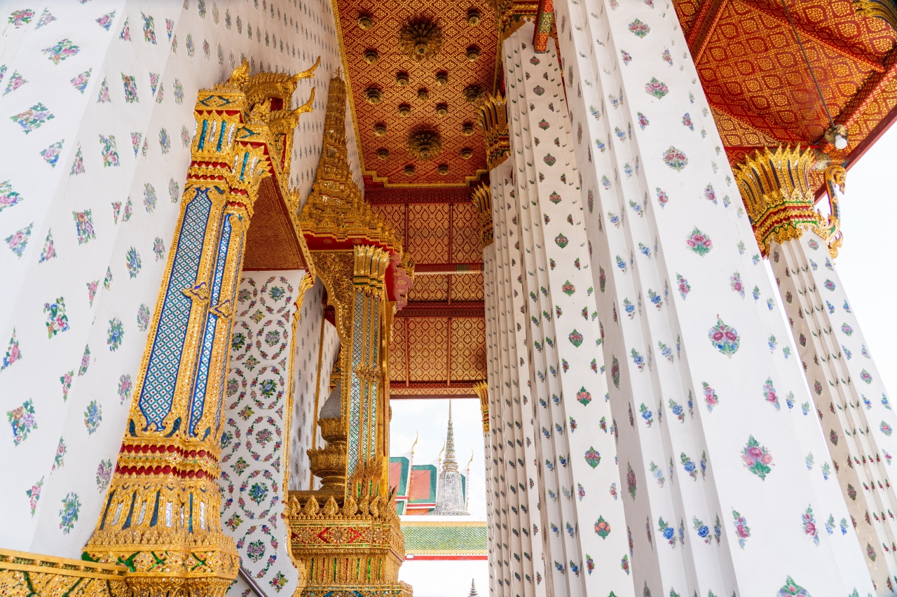 寺院に入ると、白く立派な仏塔に圧倒されます。この仏塔は本当に綺麗で、天気の良い日なんかは眩しく感じるぐらいです。
