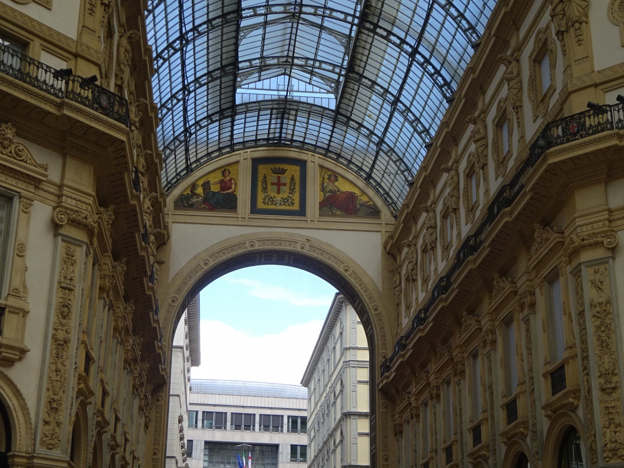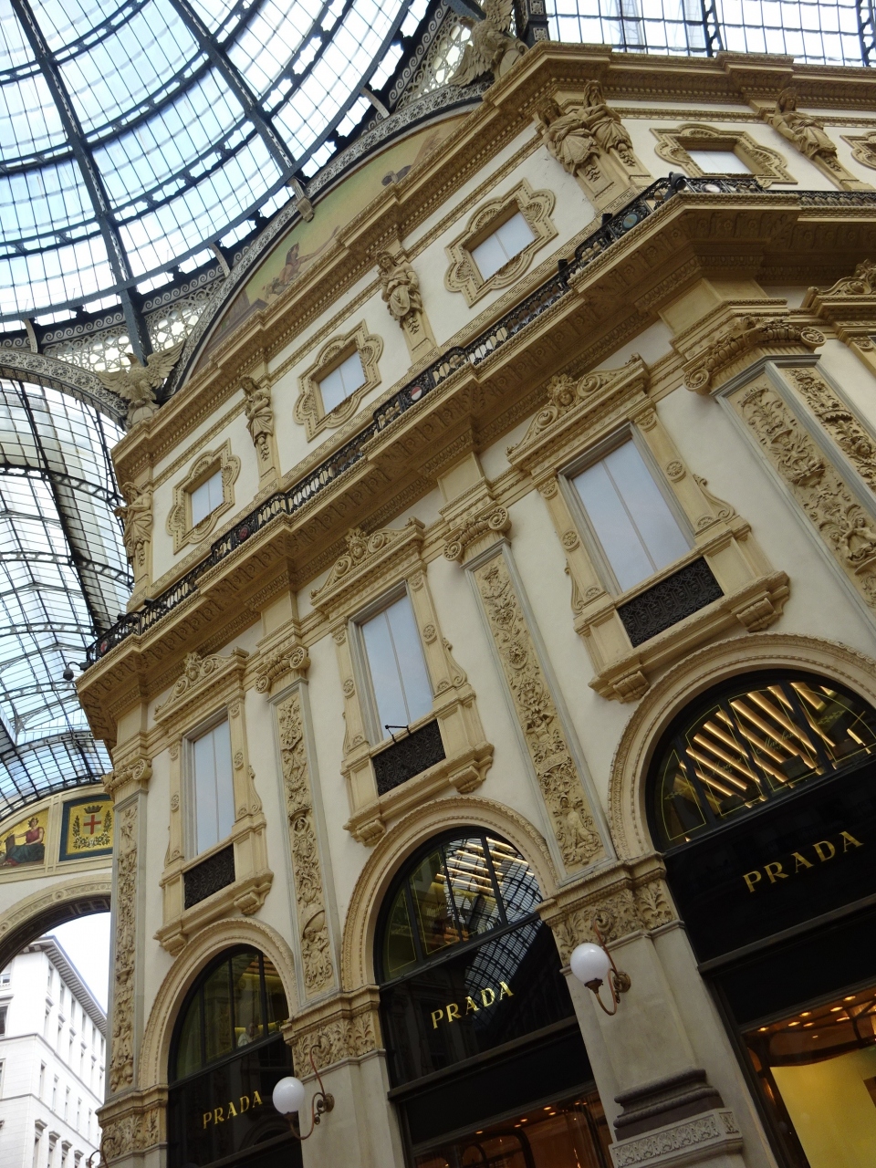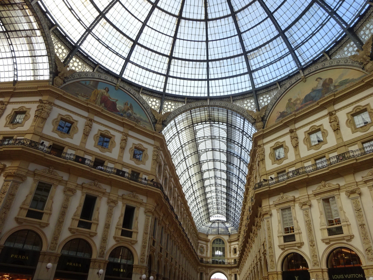 訪問した時は午後でドゥオーモあたりは観光客が一杯でガッレリアも人があふれていました。人通りが多いのでゆっくりできる場所ではありませんが、4隅の天井のフレスコ画はゆっくり眺めたかったです。